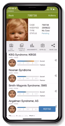This application (Face2Gene) uses a facial recognition system, and through a photograph, it can give a highly accurate diagnosis by comparing the image with its database.